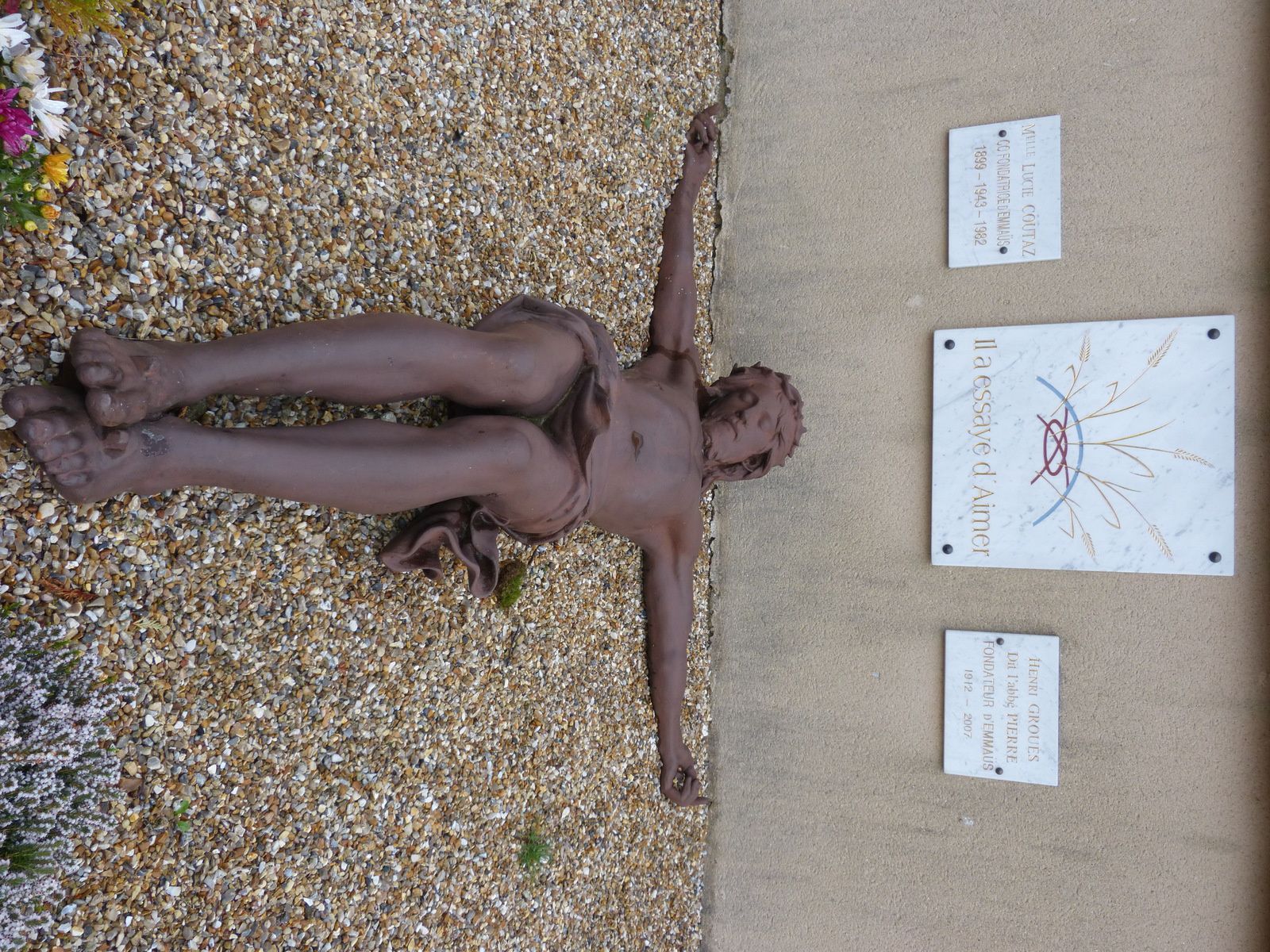 L'Abbé Pierre repose dans le cimetière situé dans l'enceinte de l'église du village avec d'autres compagnons Emmaüs.
